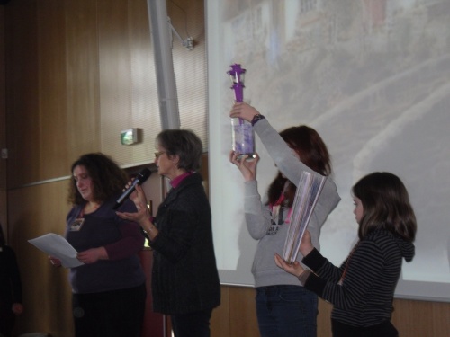 Vers le milieu de l’après midi , protégés par la Police Municipale, les enfants se sont rendus jusqu’à la cathédrale , suscitant la surprise et la curiosité des passants étonnés de voir autant d’enfants déambuler , brandissant des banderoles et panneaux de couleurs ….