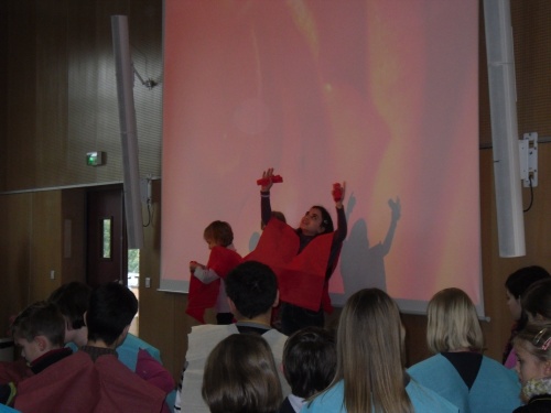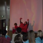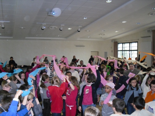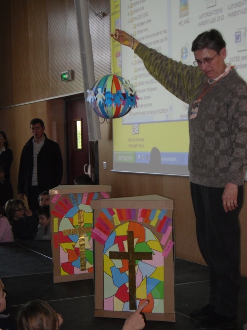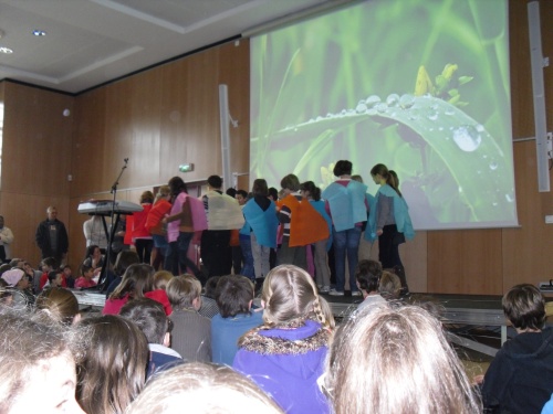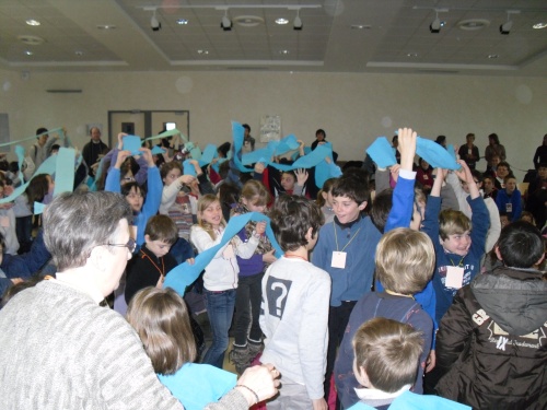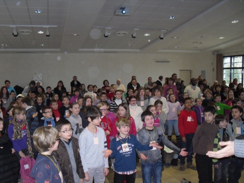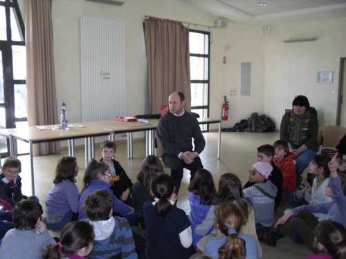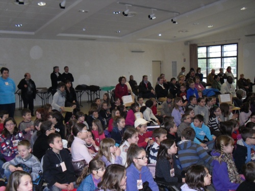 La journée a commencé par des chants , un spectacle « Arc en ciel » . Puis tout ce petit monde a pu découvrir à travers différents ateliers comment vivre le carême en ayant en mémoire les mots martelés en mode « rappeur » par le vicaire épiscopal Thierry Niquot et repris par tous, toute cette journée: