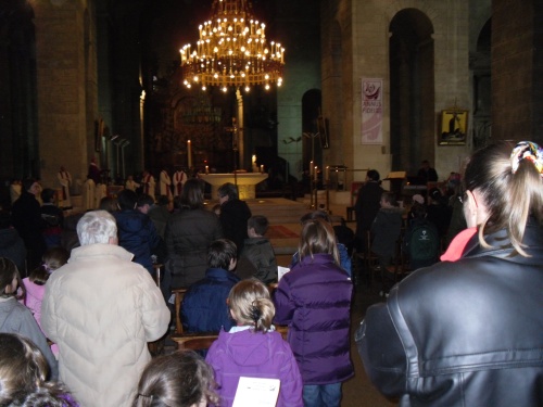 La Messe des cendres a été concélébrée dans une cathédrale comble où parents et paroissiens avaient rejoint les enfants .